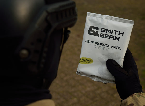 Smith&Bean Performance meal is ontwikkeld door de verschillende energiesystemen van het menselijk lichaam te analyseren en daar de meest functionele voedingsstoffen bij te zoeken. Zoals bijvoorbeeld het veelzijdige antioxidant Alfa-liponzuur wat onder andere de aanmaak van atp’s (bijv. voor sprinten) bevorderd. Haver en maltodextrine voor de snelle en langzame koolhydraten (Intensievework-outs). Verder Lijnzaad en zonnebloem als gezonde vetten (langdurige energie). Voor de proteïnes is gekozen voor dierlijke eiwitten in plaats van een plantaardige variant. De reden hiervoor is dat verhoudingsgewijs hier veel meer essentiële aminozuren in zitten dan in de plantaardige variant. Ook is het percentage BCAA’s hoger in dierlijk eiwit. Omdat uit meerdere wetenschappelijke onderzoeken is gebleken dat een persoon gemiddeld 30gr. eiwit per maaltijd effectief opneemt, geloven wij er in dat het aminozuurprofiel van die 30gr. zo effectief mogelijk moet zijn.